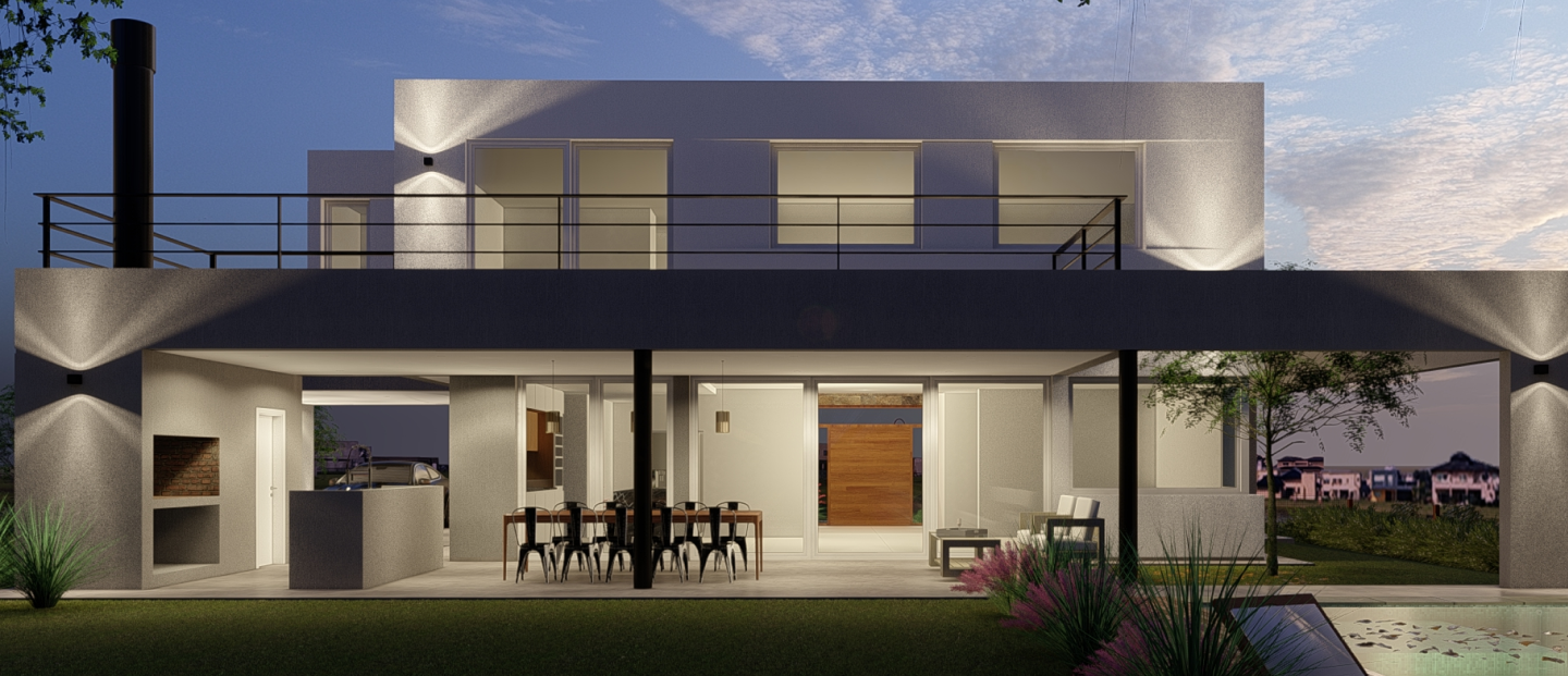 En la planta baja se acentúa el vínculo de los espacios con la galería. Estos se contactan en el lado largo del área y aprovechan de la mejor manera el paso entre el interior y el exterior. Los espacios intermedios entre los cubiertos y semicubiertos amplían la iluminación y le da un carácter particular a la casa.