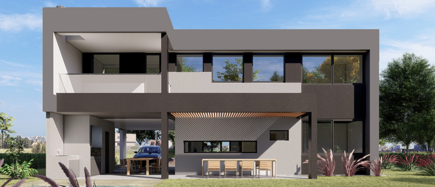 La cochera y la galería se alinean para tener unas visuales profundas hacia el fondo del lote y la decisión de colocar el living al frente genera una fachada muy liviana hacia el barrio. El dormitorio principal se coloca longitudinal al lote y permite tener expansiones hacia ambos lados.